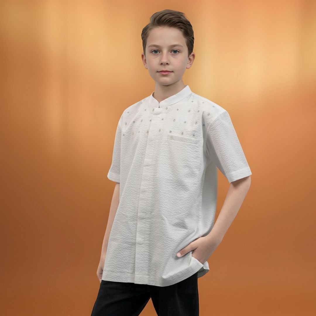Shafira | Syafran Menswear Boys | Koko Tangan Pendek Anak Laki-Laki | Bahan Cotton Crinkle